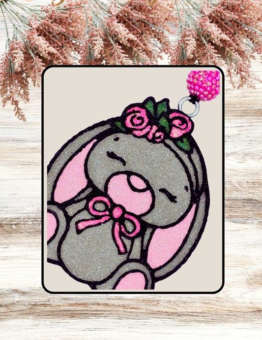 Freshie Floppy Ear Bunny Flowers Pink Gray