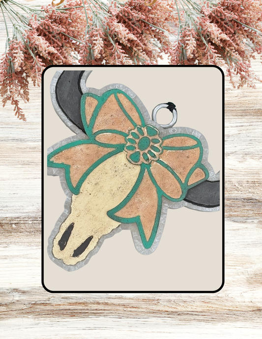 Freshie Coquette Bow Bull Skull Teal Tan