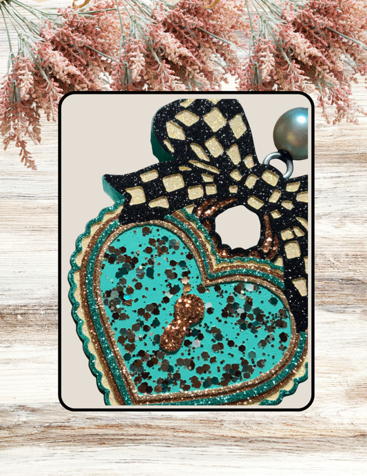 • Freshie Locket with Checkered Bow Turquoise Black