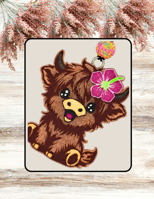 Sold outFreshie Highland Cow Pink Hibiscus