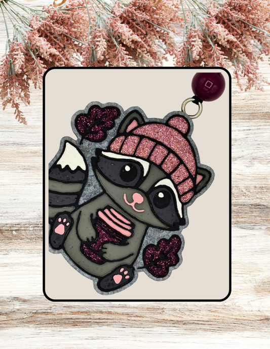 Freshie Raccoon Latte Leaves Mauve Burgundy