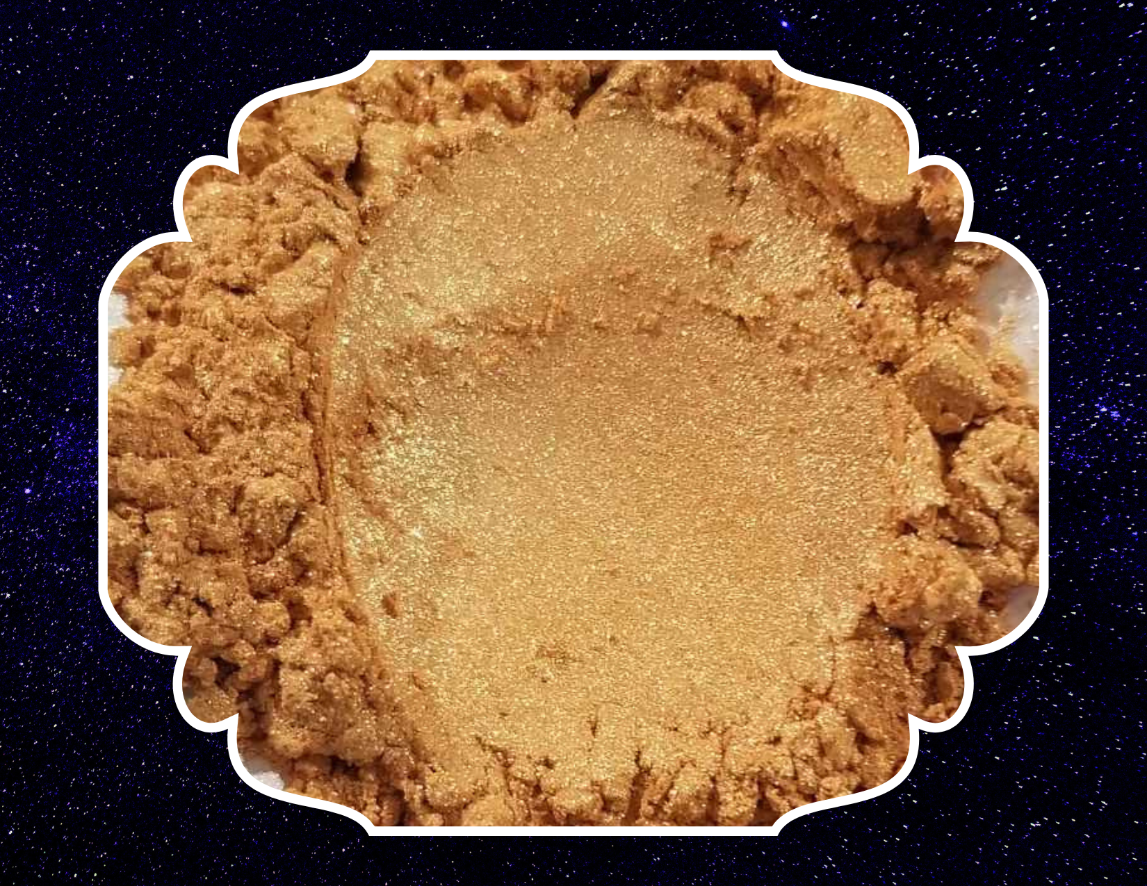 A bright gold mica powder with lots of shimmery color. This product has high color purity. Sold by volume in a 5 gram pot.