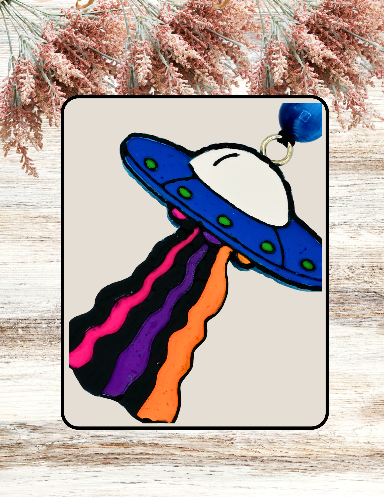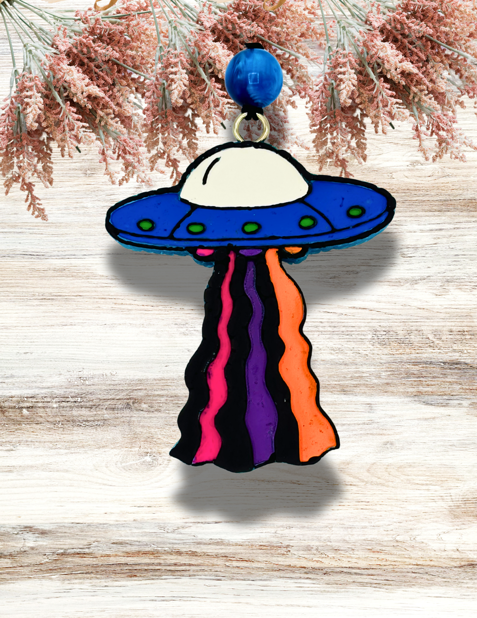 Adorable Alien Abduction design in Blue and Multicolors. The fragrance is Blue Hawaiian. Awesome for car, or any small space you want to smell amazing!