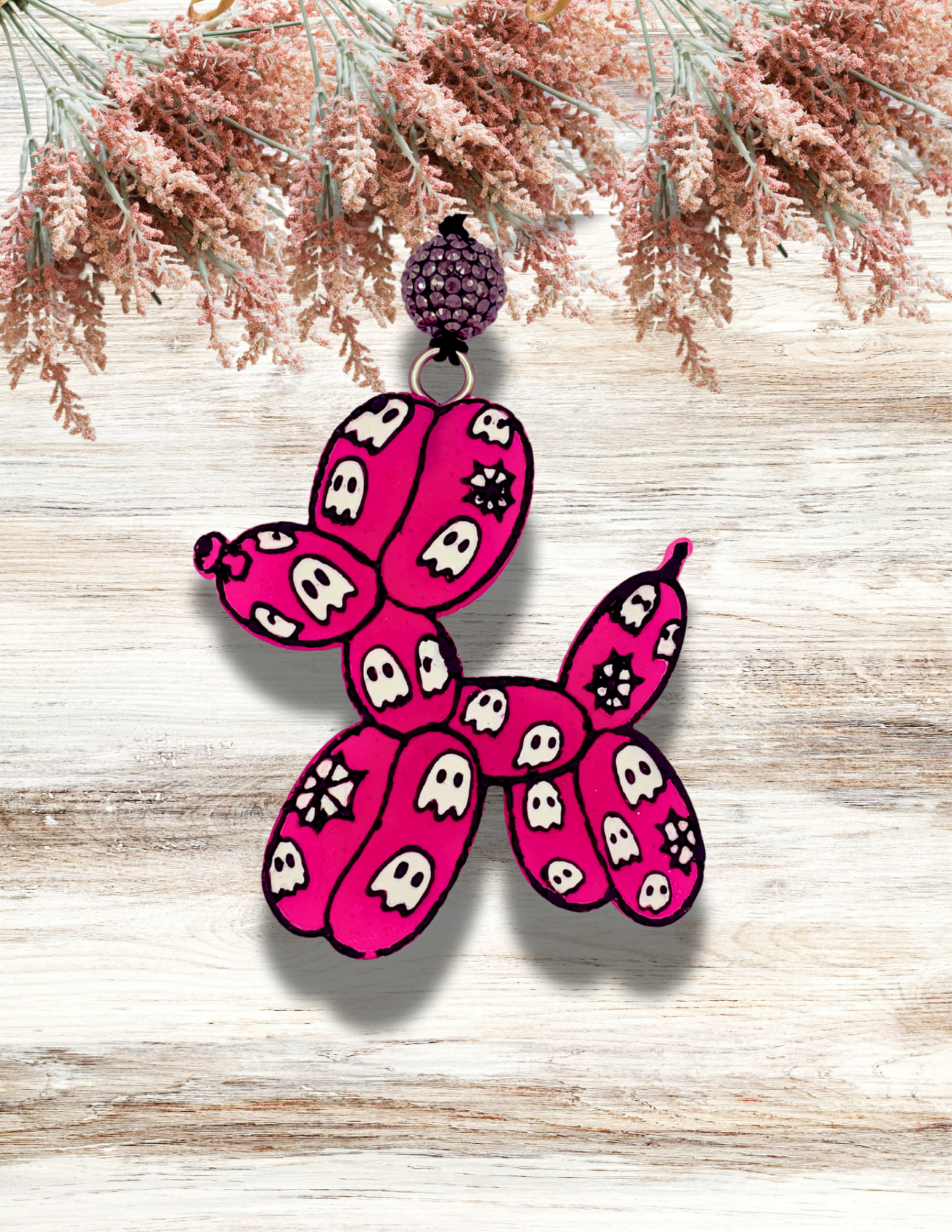 Adorable Balloon Dog with Ghosts design in Pink and White. The fragrance is Cozy Apple Cider. Awesome for car, or any small space you want to smell amazing!