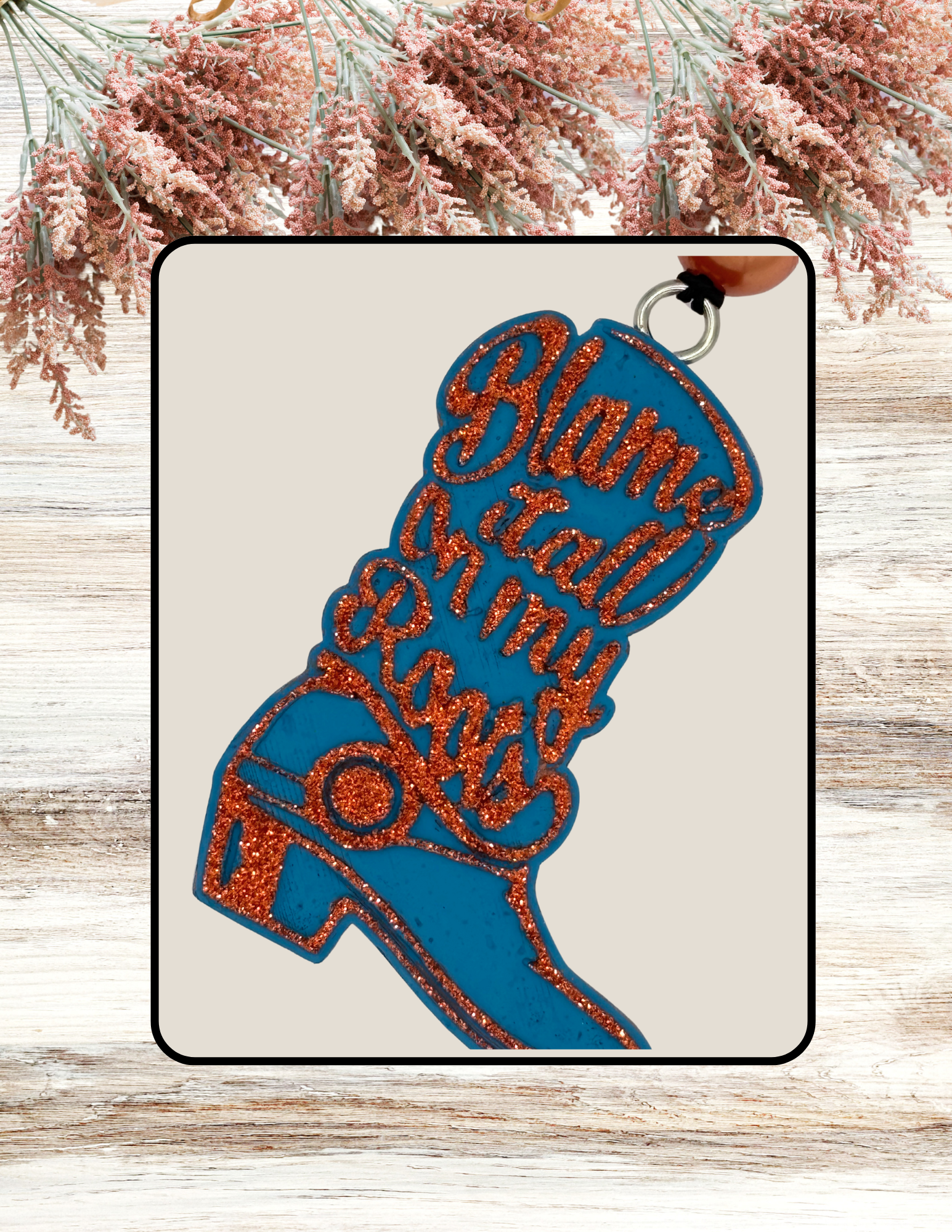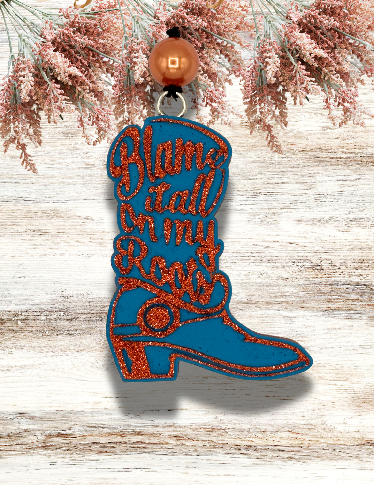 Adorable Cowboy Boot with Blame It All On My Roots design in Copper and Turquoise. The fragrance is Leather & Lace. Awesome for car, or any small space you want to smell amazing!
