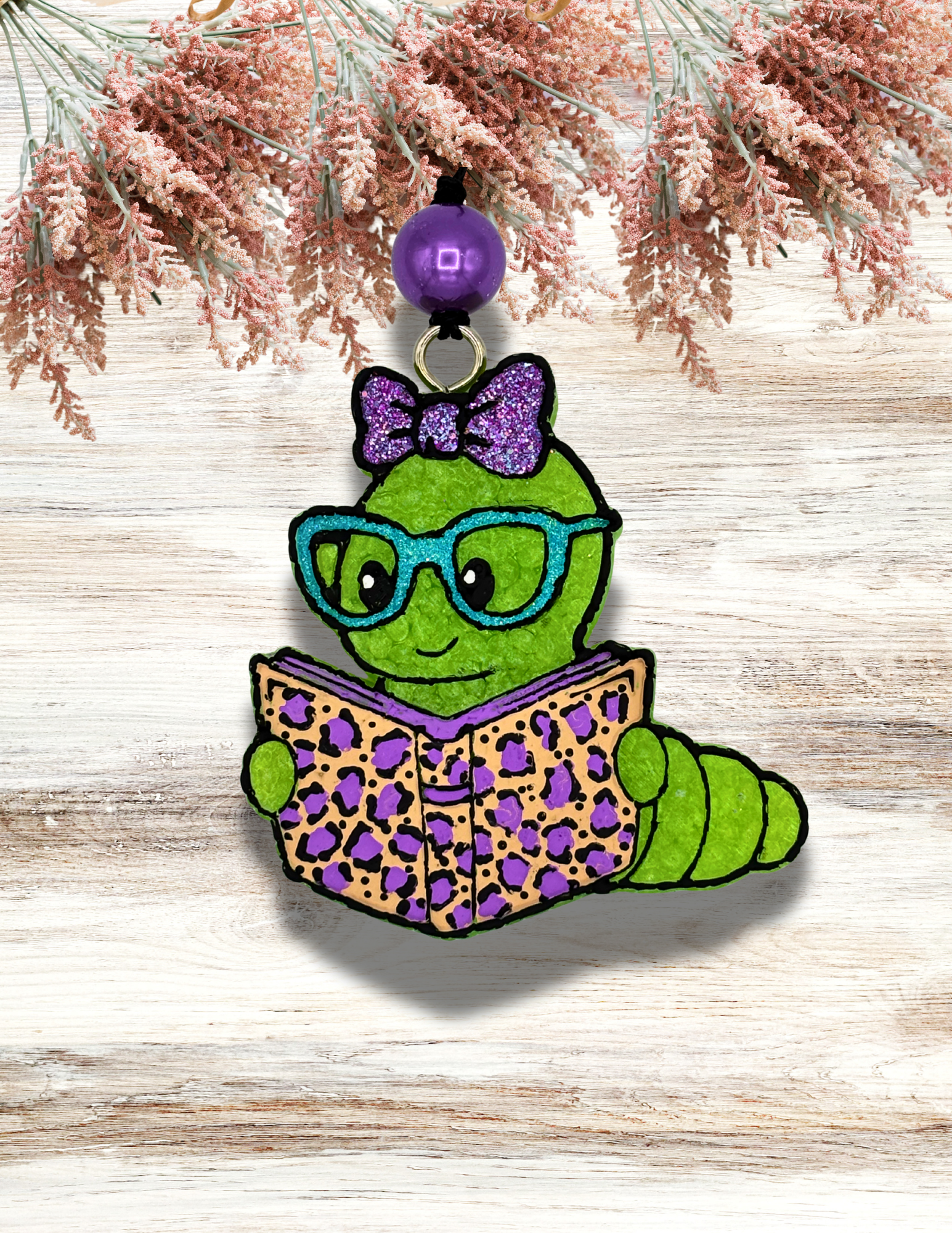 Adorable Bookworm with Book design in Purple Leopard. The fragrance is Boot Scootin' Sweetie. Awesome for car, or any small space you want to smell amazing!