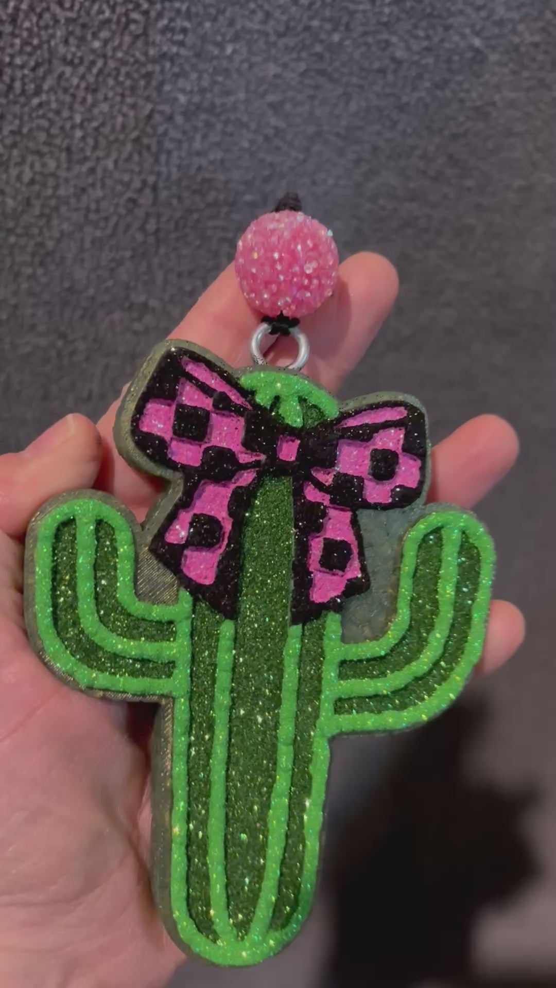 Adorable Cactus with Plaid Bow design in Pink and Black. The fragrance is Bourbon Butterscotch. Awesome for car, or any small space you want to smell amazing!