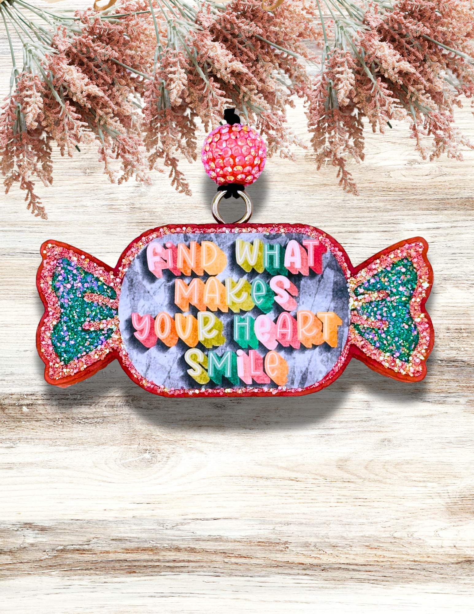 Adorable Candy Find What Makes Your Heart Smile design in Coral & Turquoise. The fragrance is Love Spell. Awesome for car, or any small space you want to smell amazing!