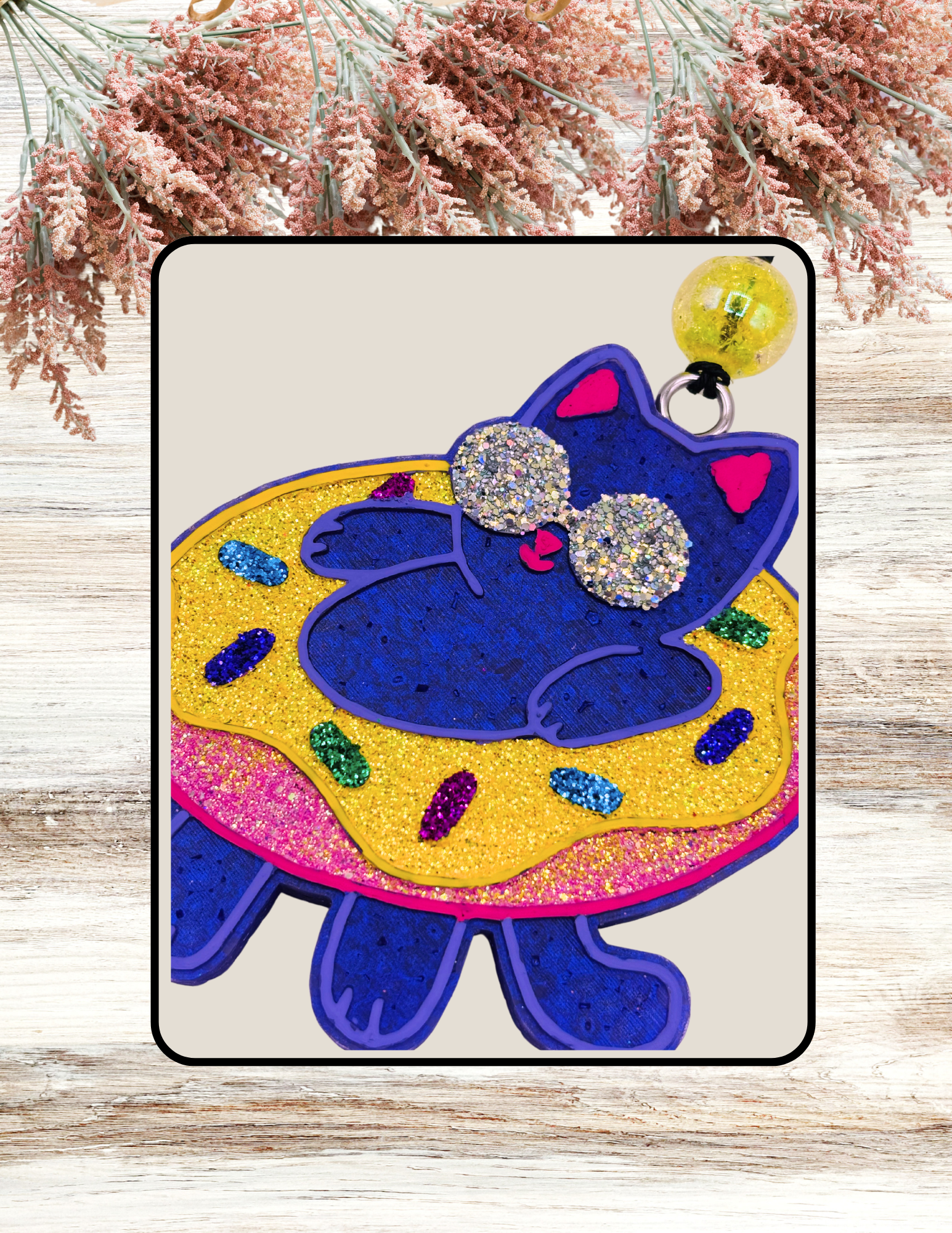 Adorable Cat Floatie design in Yellow & Purple. The fragrance is Endless Weekend. Awesome for car, or any small space you want to smell amazing!