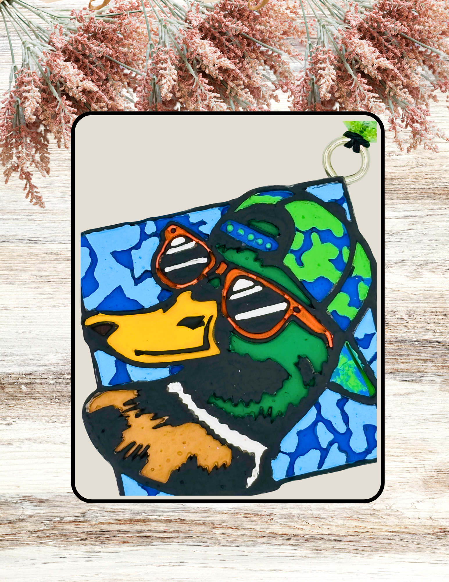 Adorable Duck with Sunglasses design in a Blue & Green Camo. The fragrance is Barn Wood. Awesome for car, or any small space you want to smell amazing!