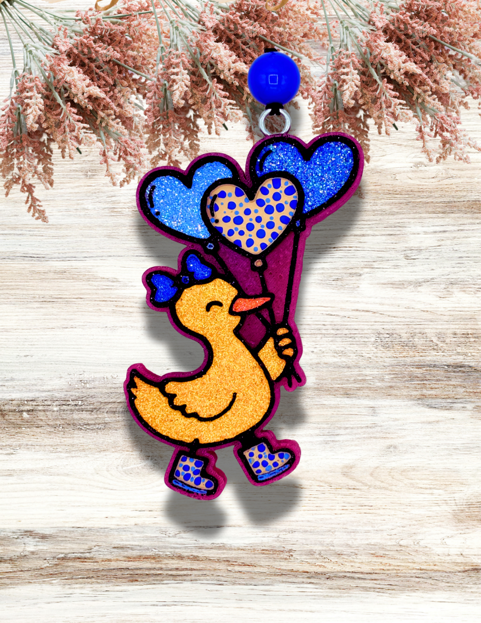 Adorable Duck in Boots with Balloons design in Blues and a fun Dot Design. The fragrance is Banana Cream Pie. Awesome for car, or any small space you want to smell amazing!