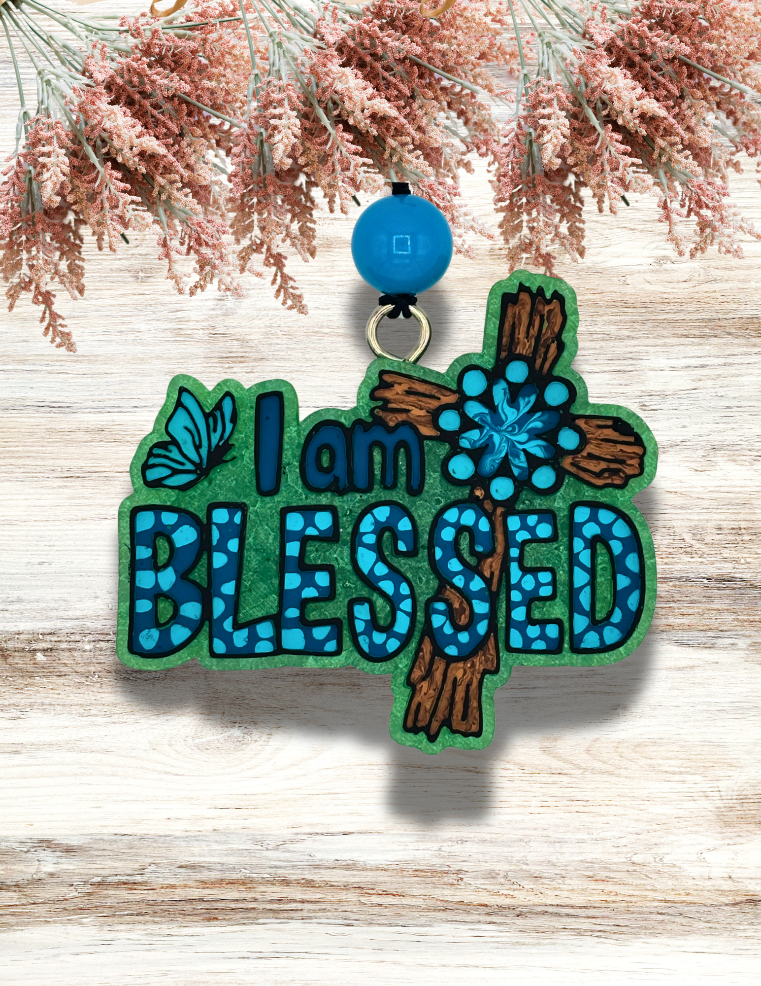 Adorable I Am Blessed Cross design in Turquoise Polka Dot. The fragrance is Love Spell. Awesome for car, or any small space you want to smell amazing!