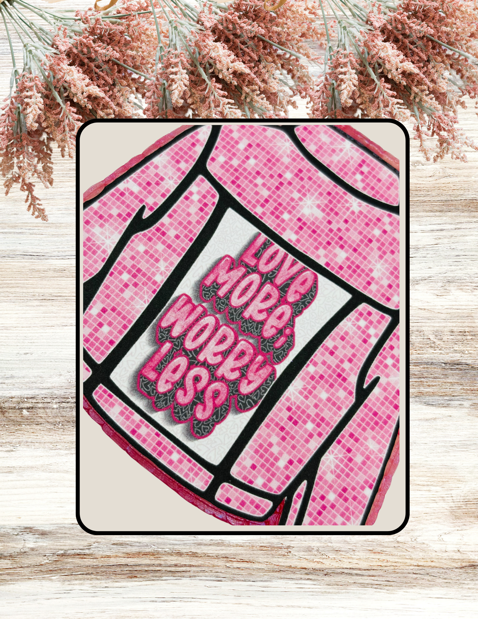 Adorable Pink Glitter Jacket Freshie with a Love More Worry Less design. The fragrance is Baja Cactus Blossom. Awesome for car, or any small space you want to smell amazing!
