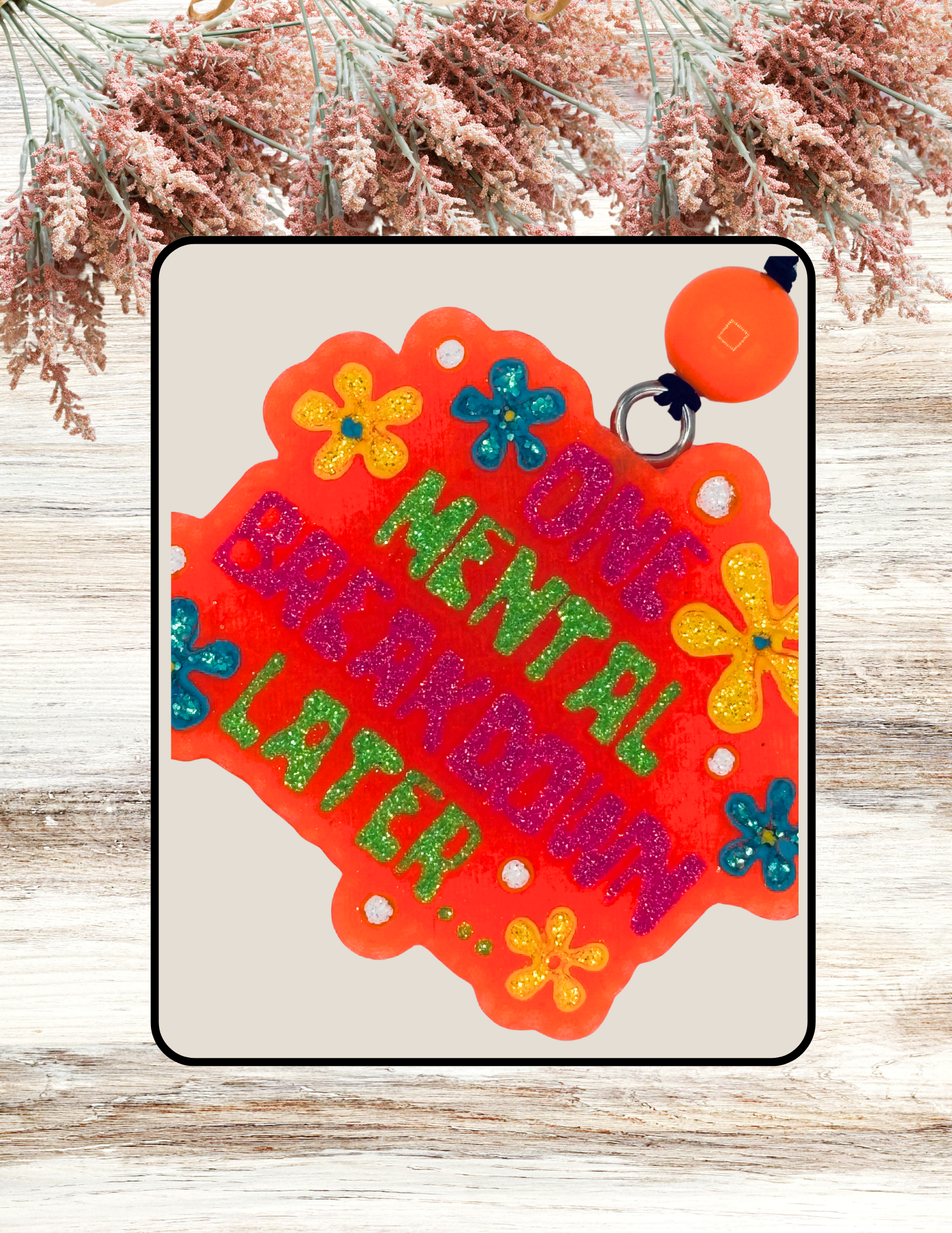 Adorable One Mental Breakdown Later design in Neon Orange. The fragrance is Black Vanilla Raspberry. Awesome for car, or any small space you want to smell amazing!