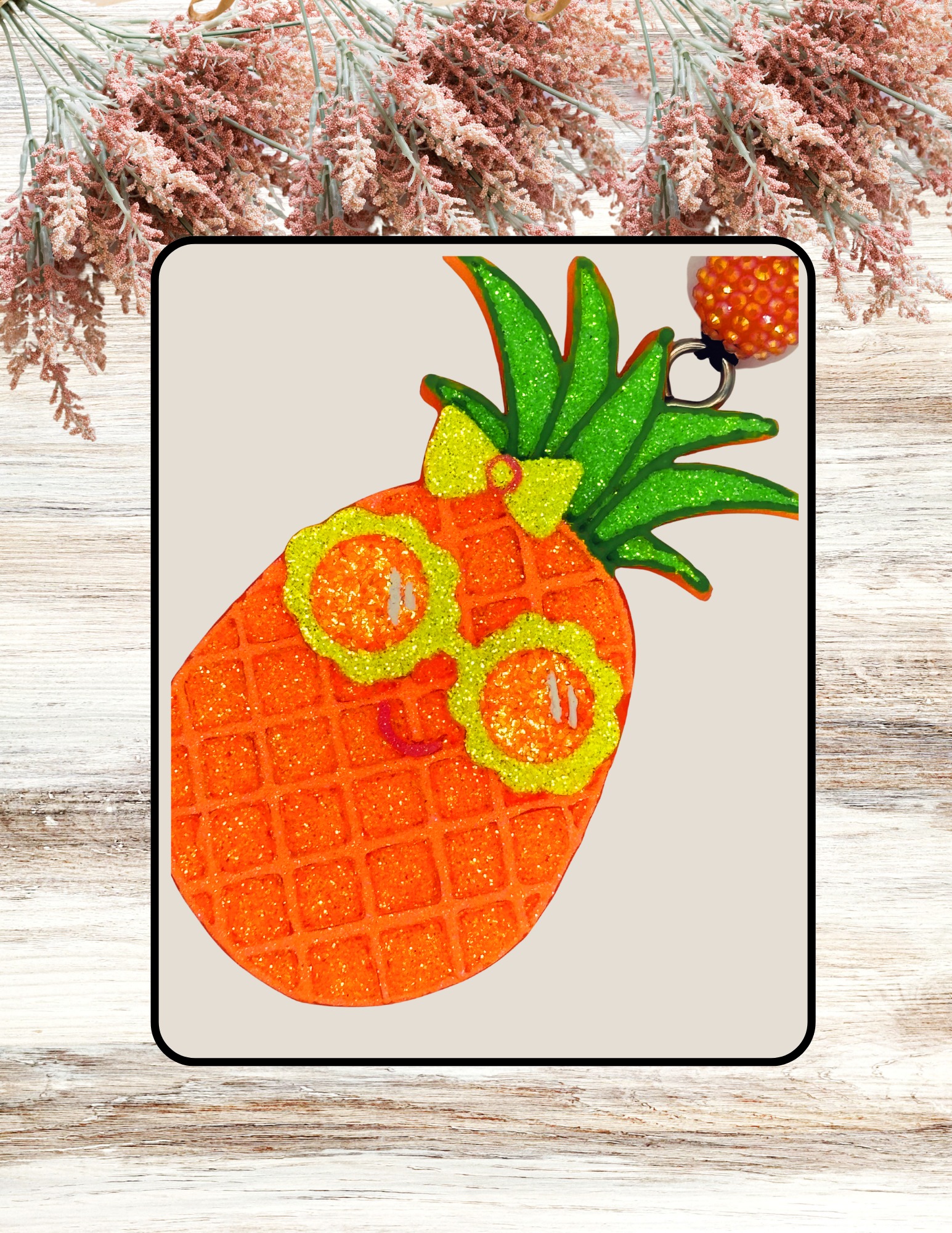 Adorable Pineapple with Neon Yellow Bow & Sunglasses design. The fragrance is Pineapple Mango. Awesome for car, or any small space you want to smell amazing!