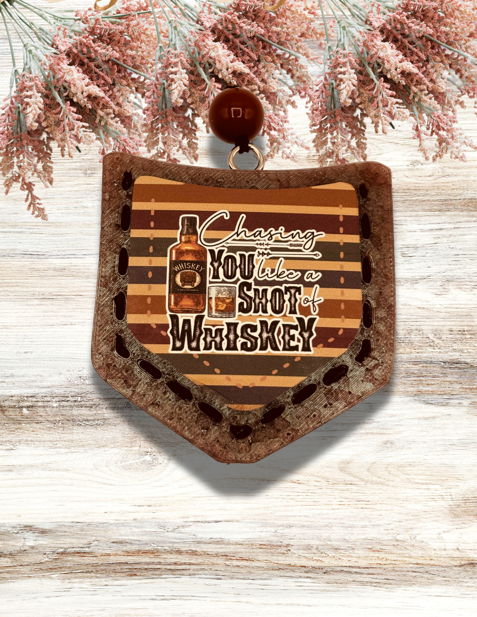 Adorable Pocket Chasing You Like a Shot of Whiskey design in Brown. The fragrance is Acqua Di Gio. Awesome for car, or any small space you want to smell amazing!
