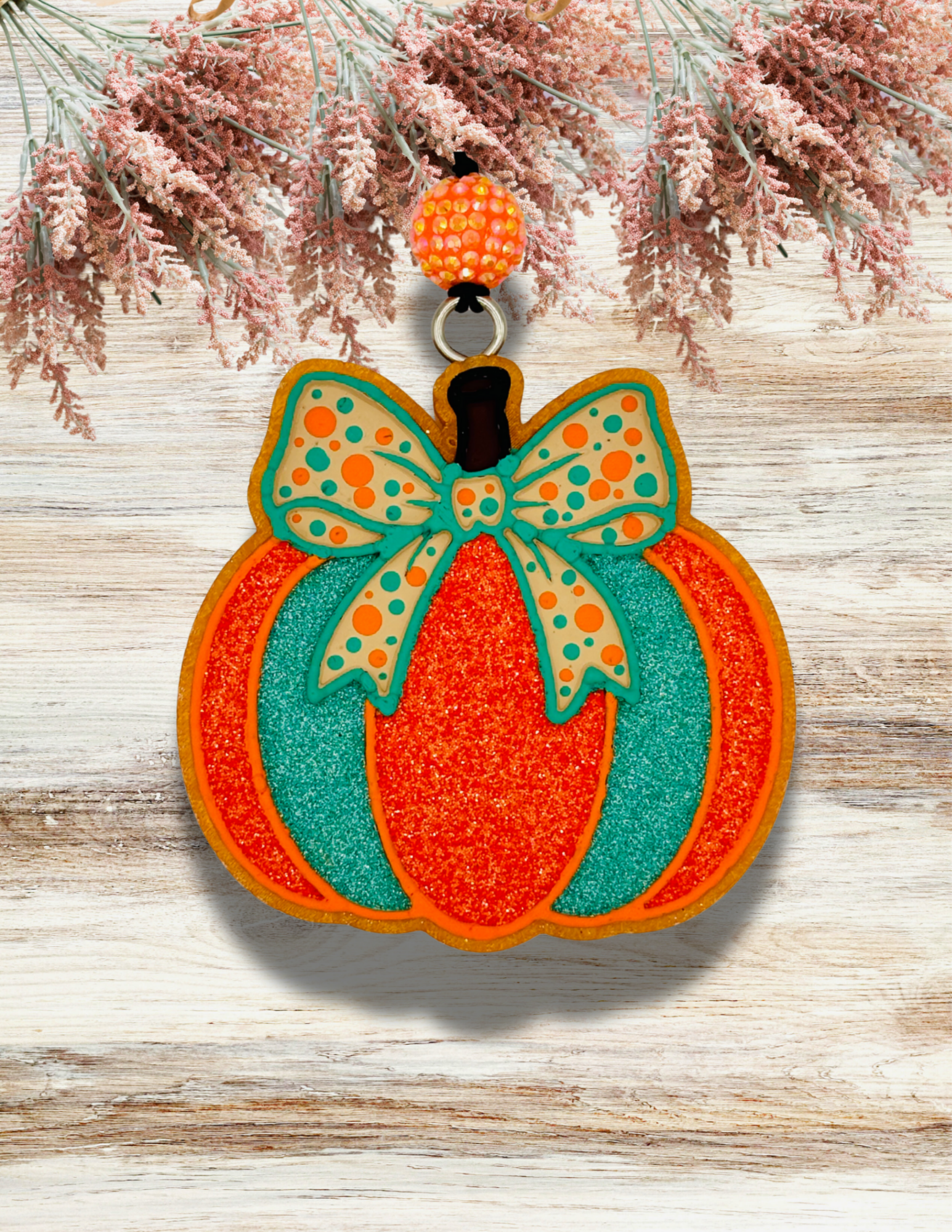 Freshie Pumpkin with Coquette Bow Orange Teal