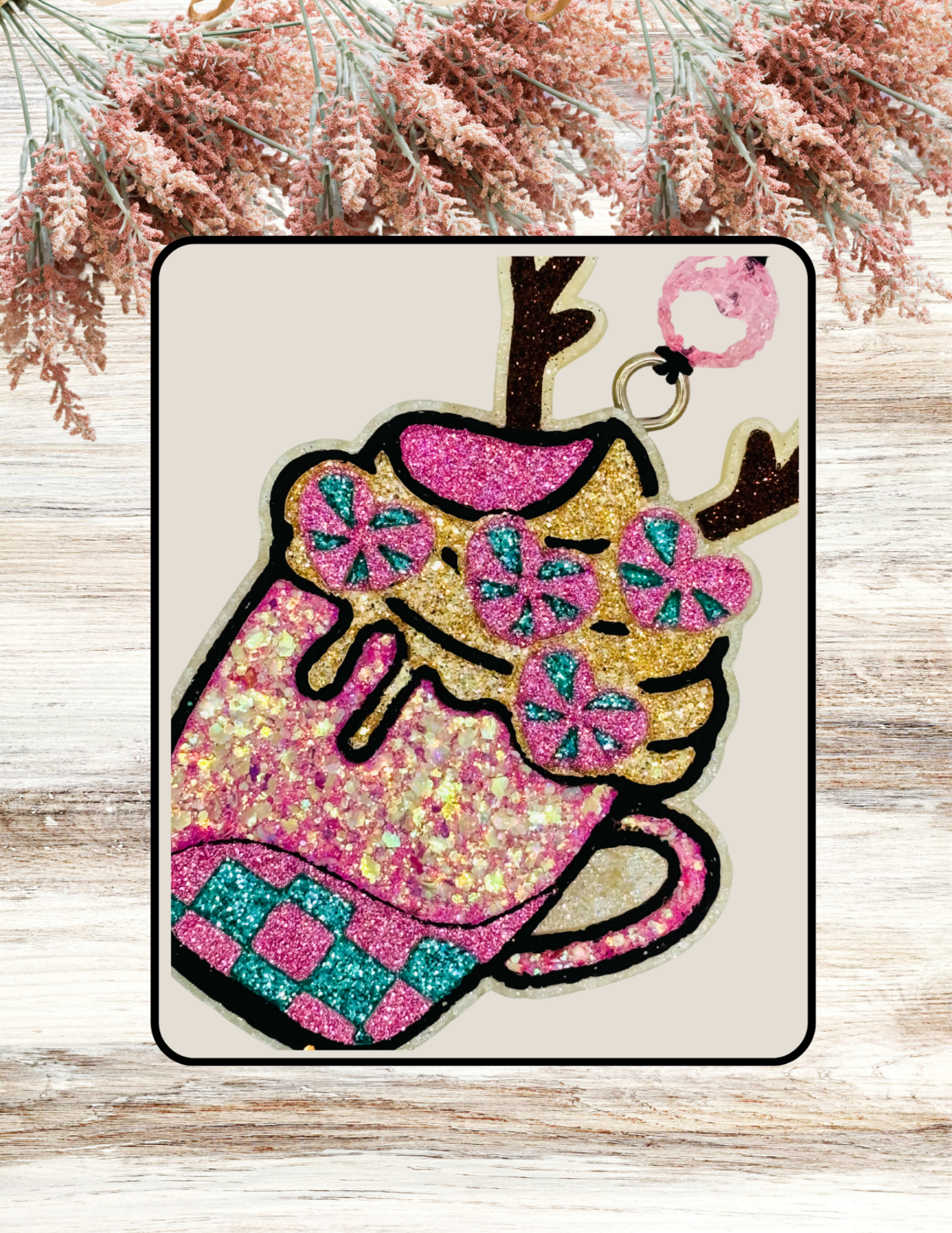 Adorable Reindeer Peppermint Cup in Pink and Teal. The fragrance is Vanilla Bean Noel. Awesome for car, or any small space you want to smell amazing!