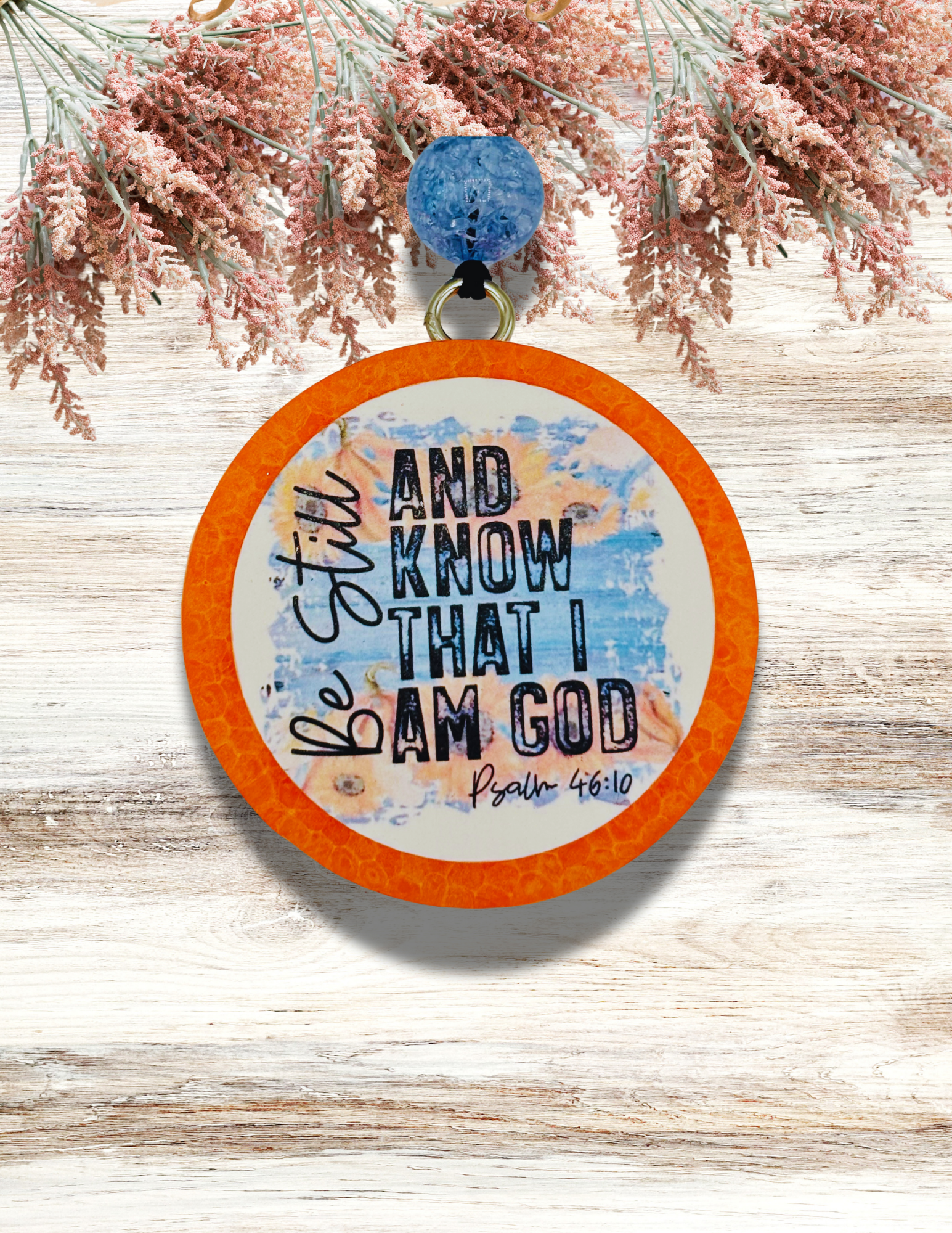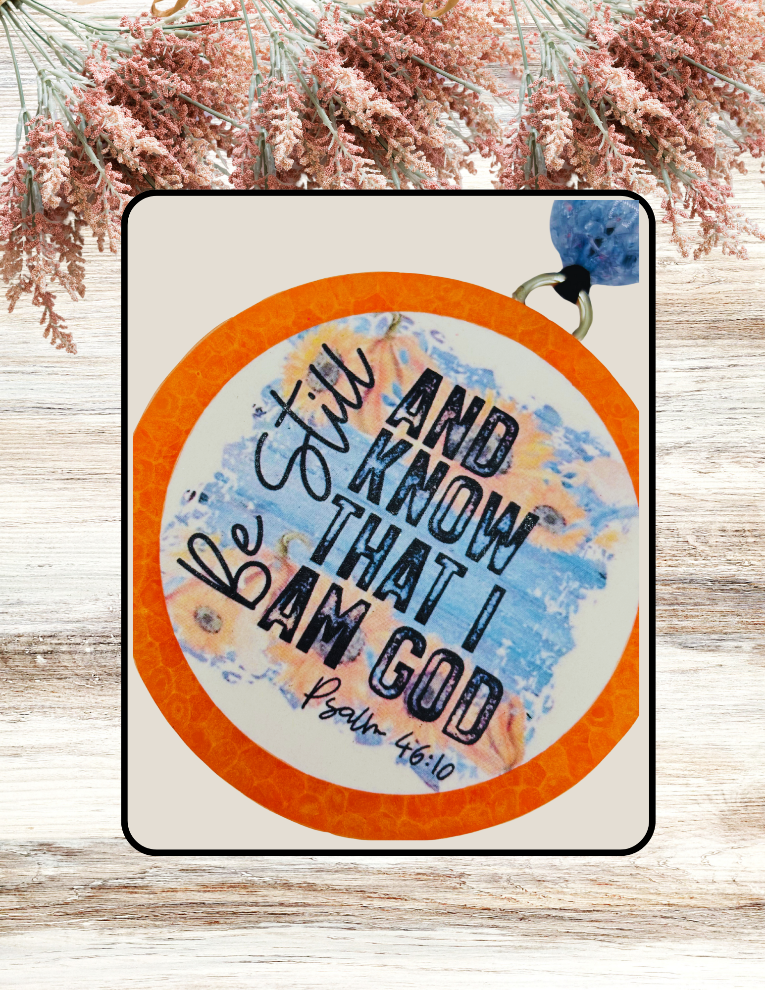 Adorable Freshie Round Be Still And Know That I Am God Print in Orange. The fragrance is Volcano. Awesome for car, or any small space you want to smell amazing!