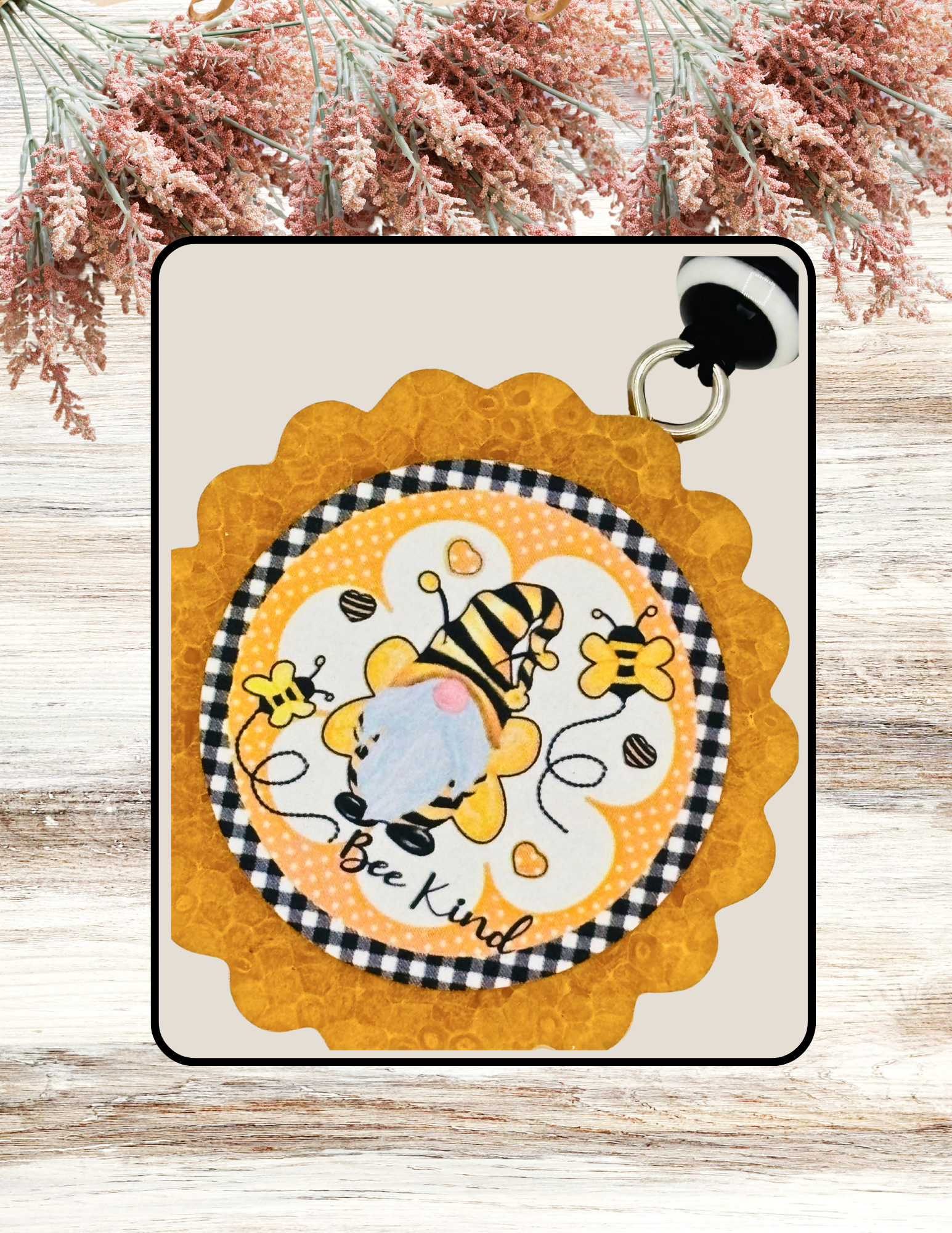 Adorable Freshie Round Bee Kind Gnome Print in Yellow. The fragrance is Lemon Pound Cake. Awesome for car, or any small space you want to smell amazing!