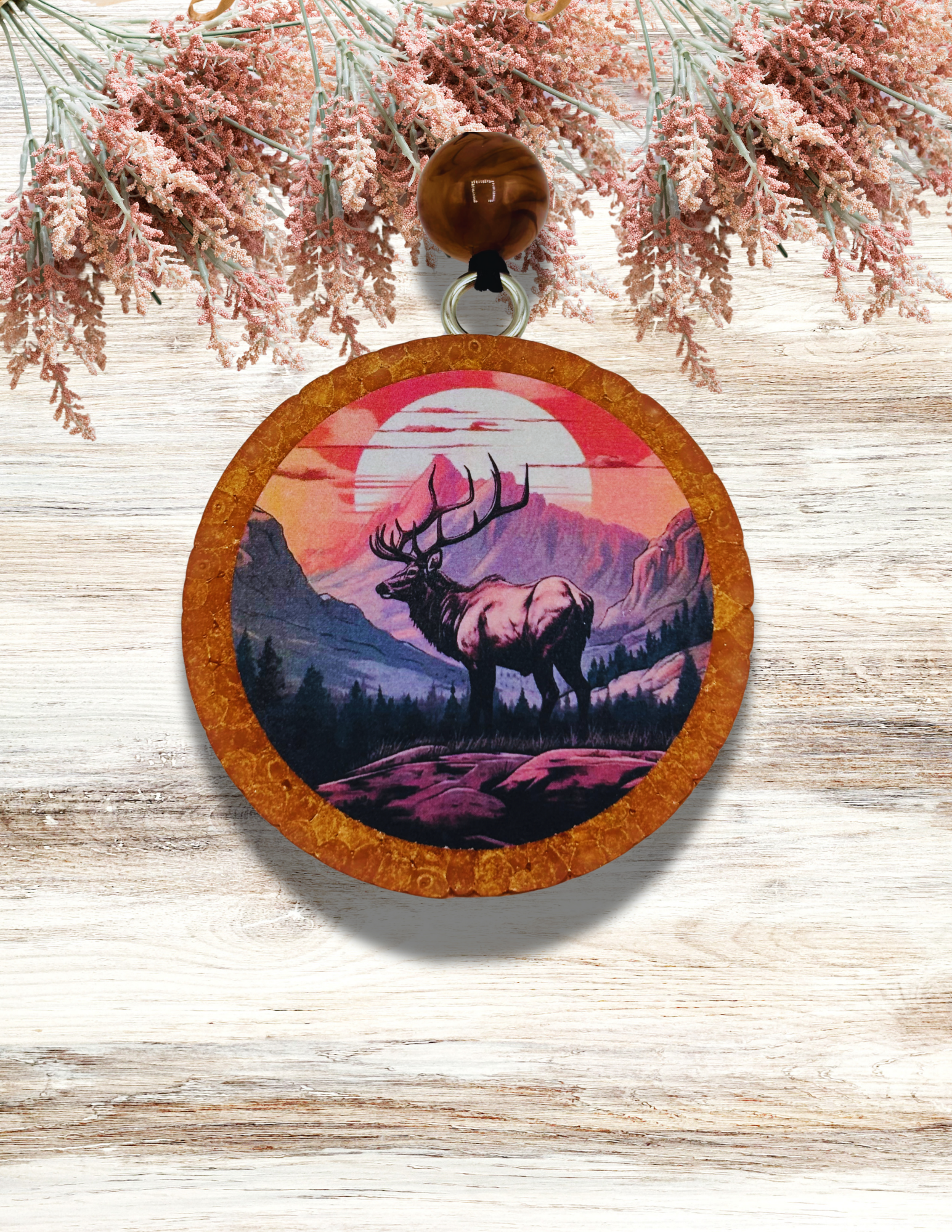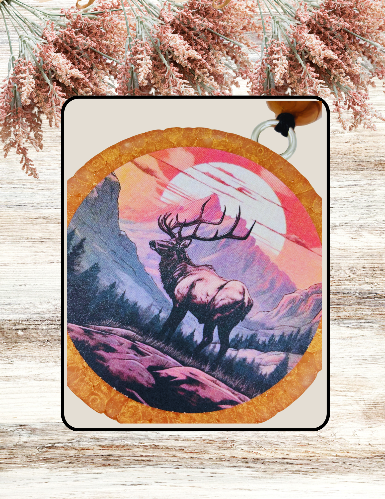 Adorable Freshie Round Elk Mountain Sunset Print in Orange. The fragrance is Tom Ford Tobacco Vanilla. Awesome for car, or any small space you want to smell amazing!