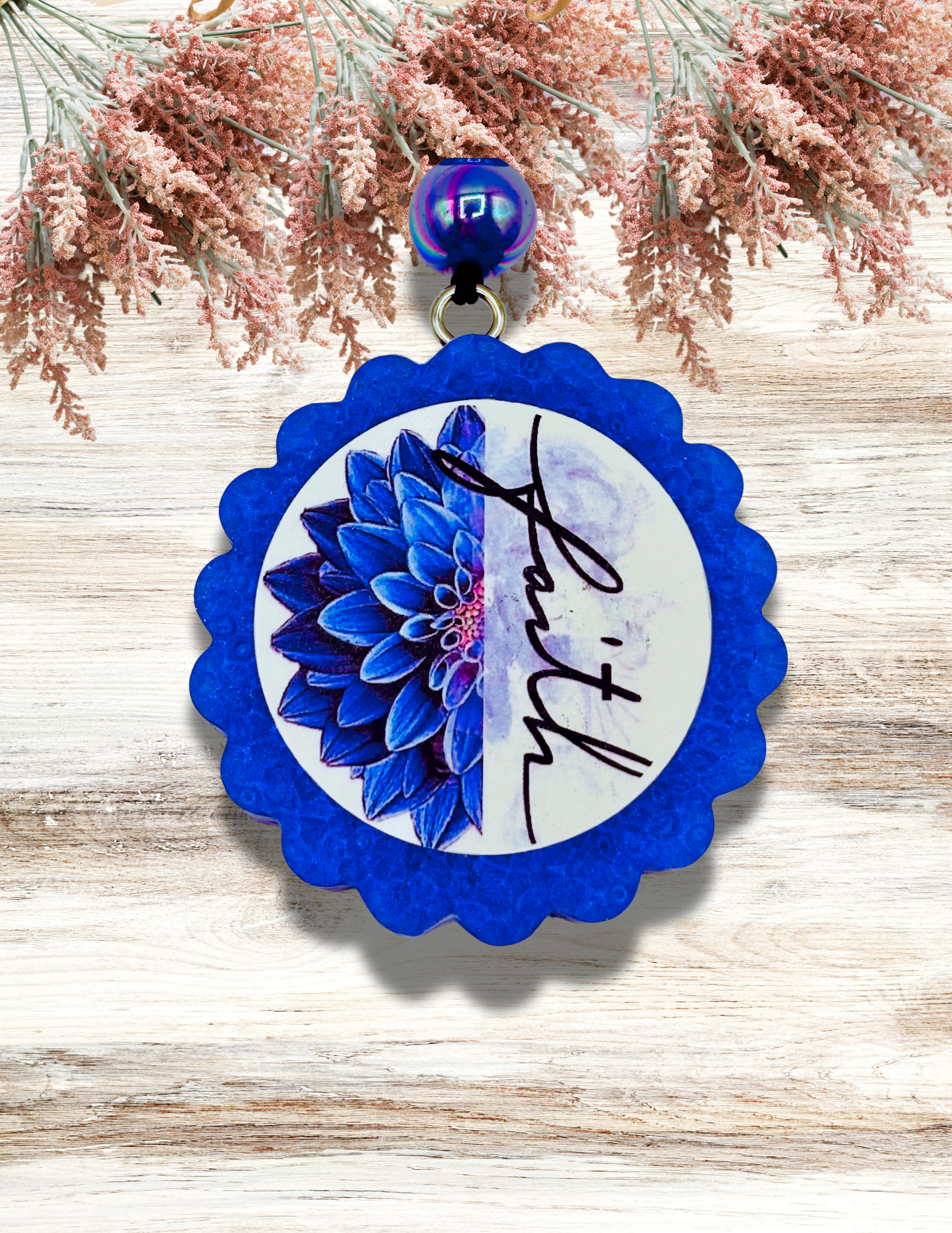 Adorable Freshie Round Faith Flower Print in Purple. The fragrance is Black Amber Lavender. Awesome for car, or any small space you want to smell amazing!