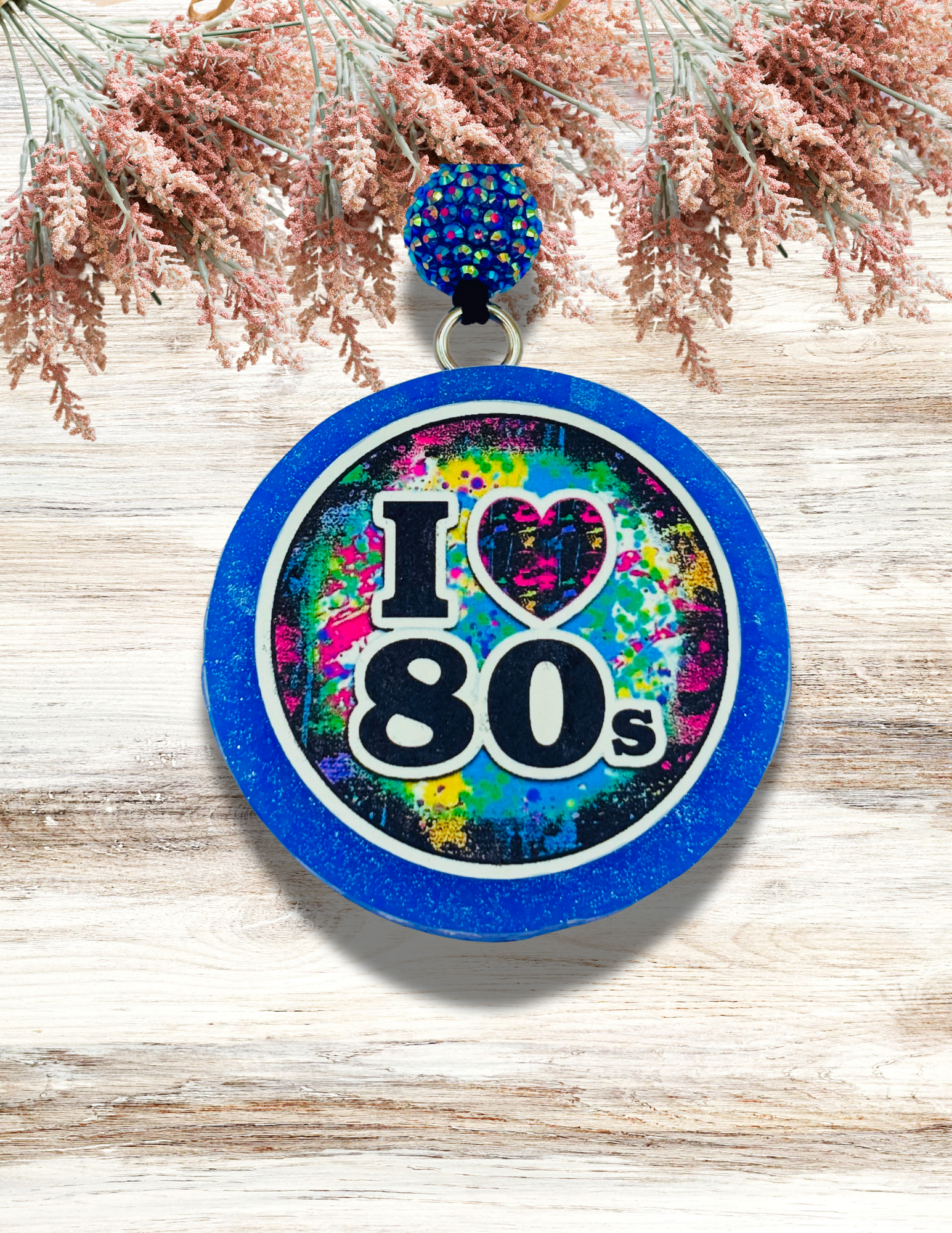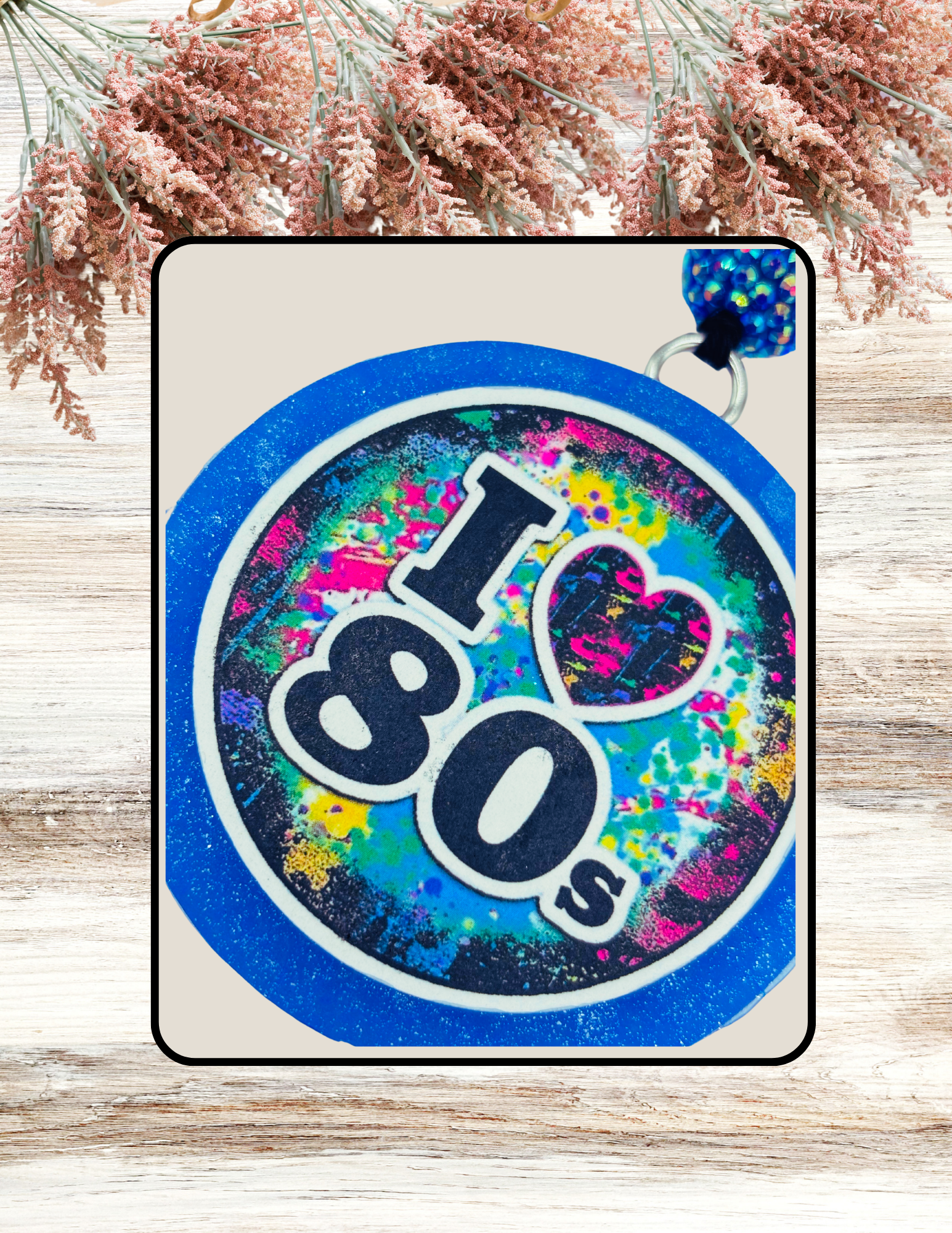 Adorable Freshie Round I Love 80's in Blue. The fragrance is Raspberry Lemonade. Awesome for car, or any small space you want to smell amazing!