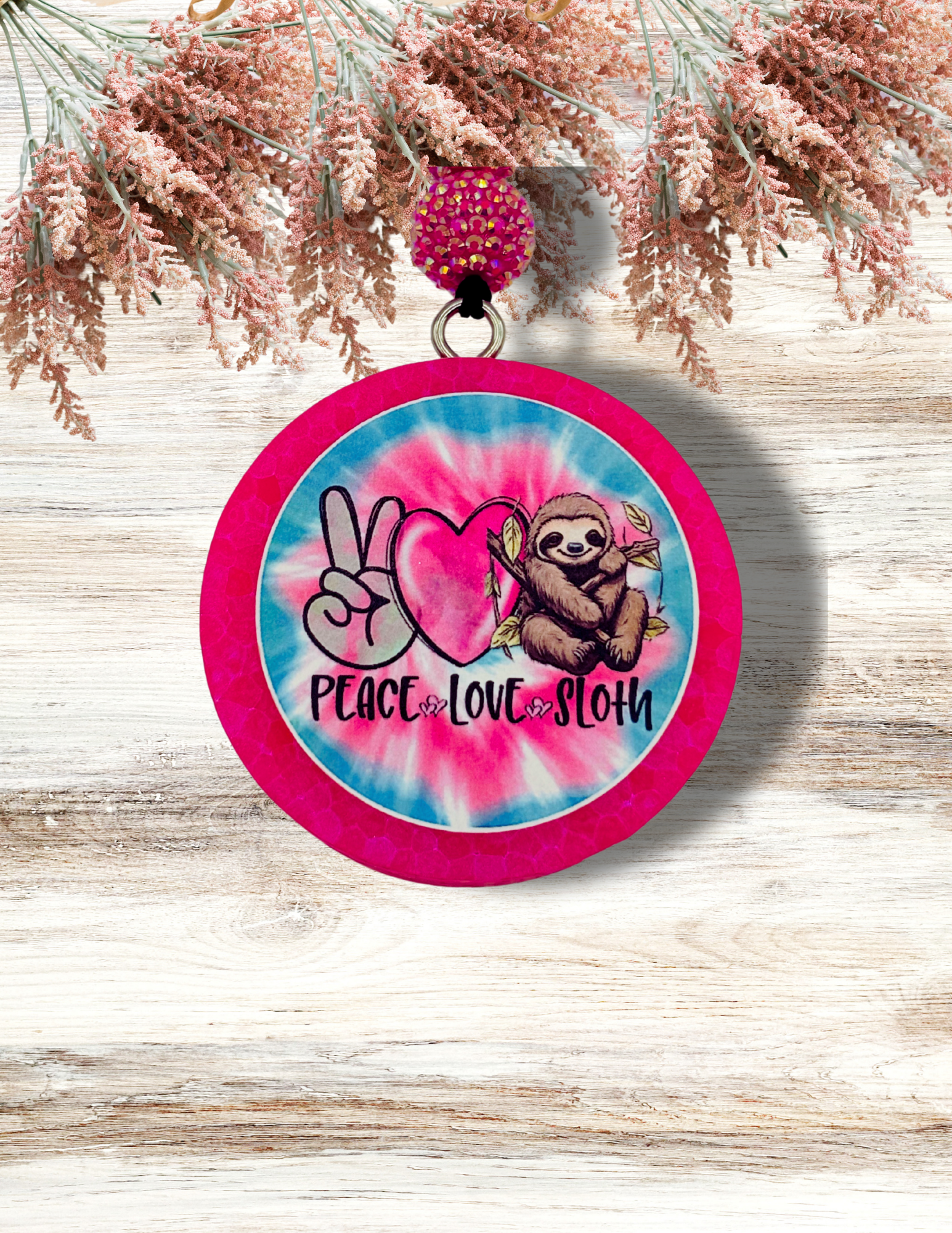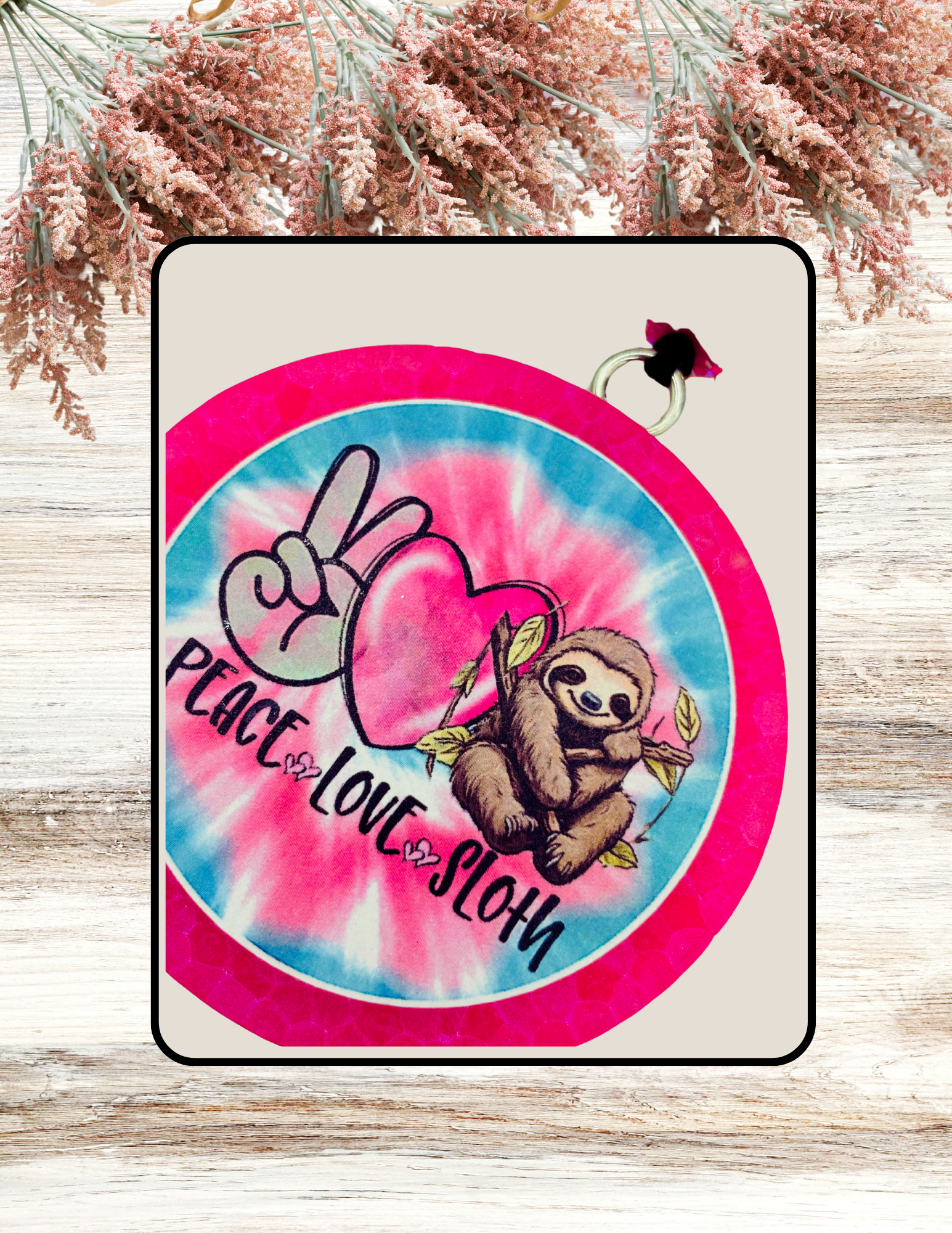 Adorable Freshie Round Peace Love Sloth in Pink. The fragrance is Pink Sands. Awesome for car, or any small space you want to smell amazing!