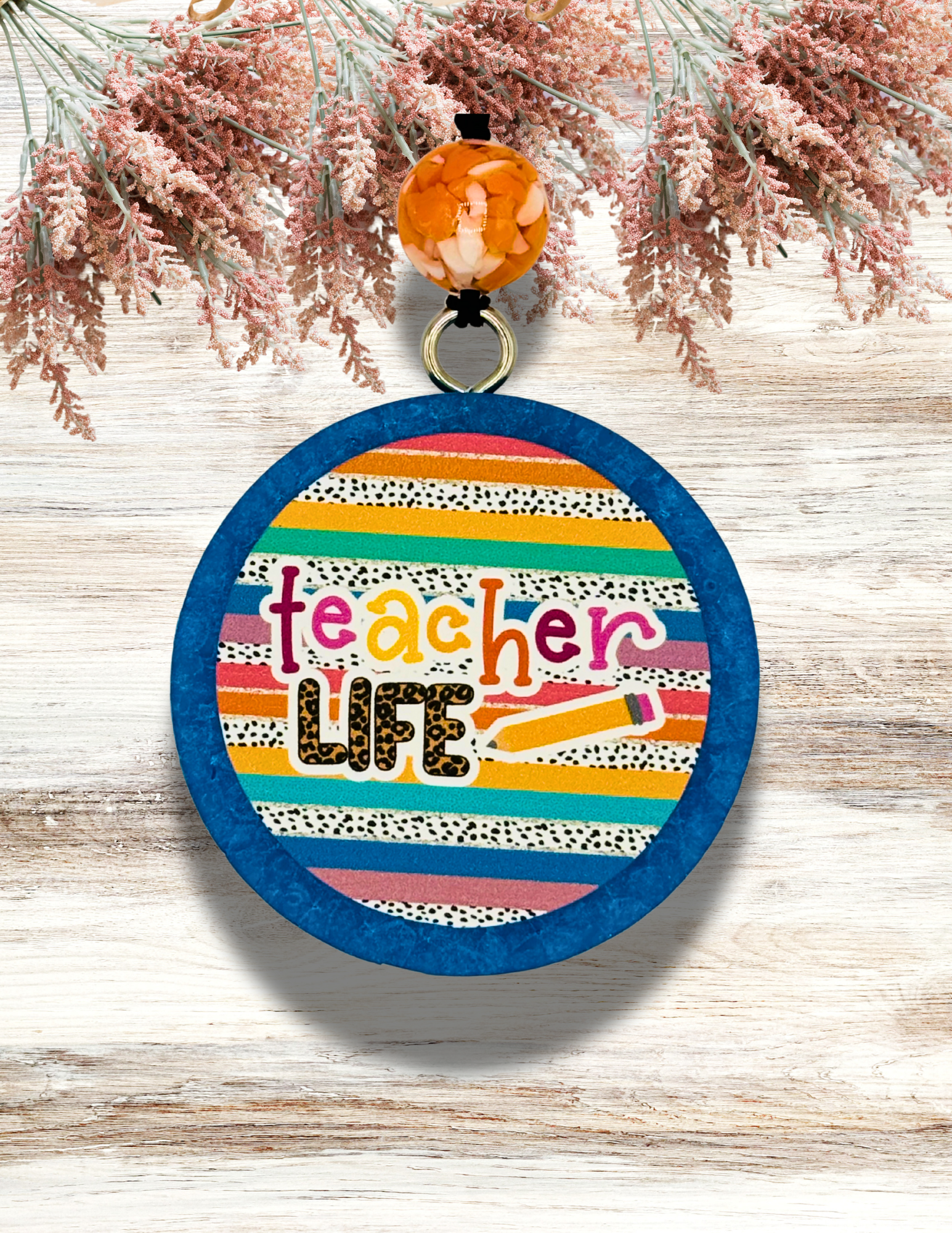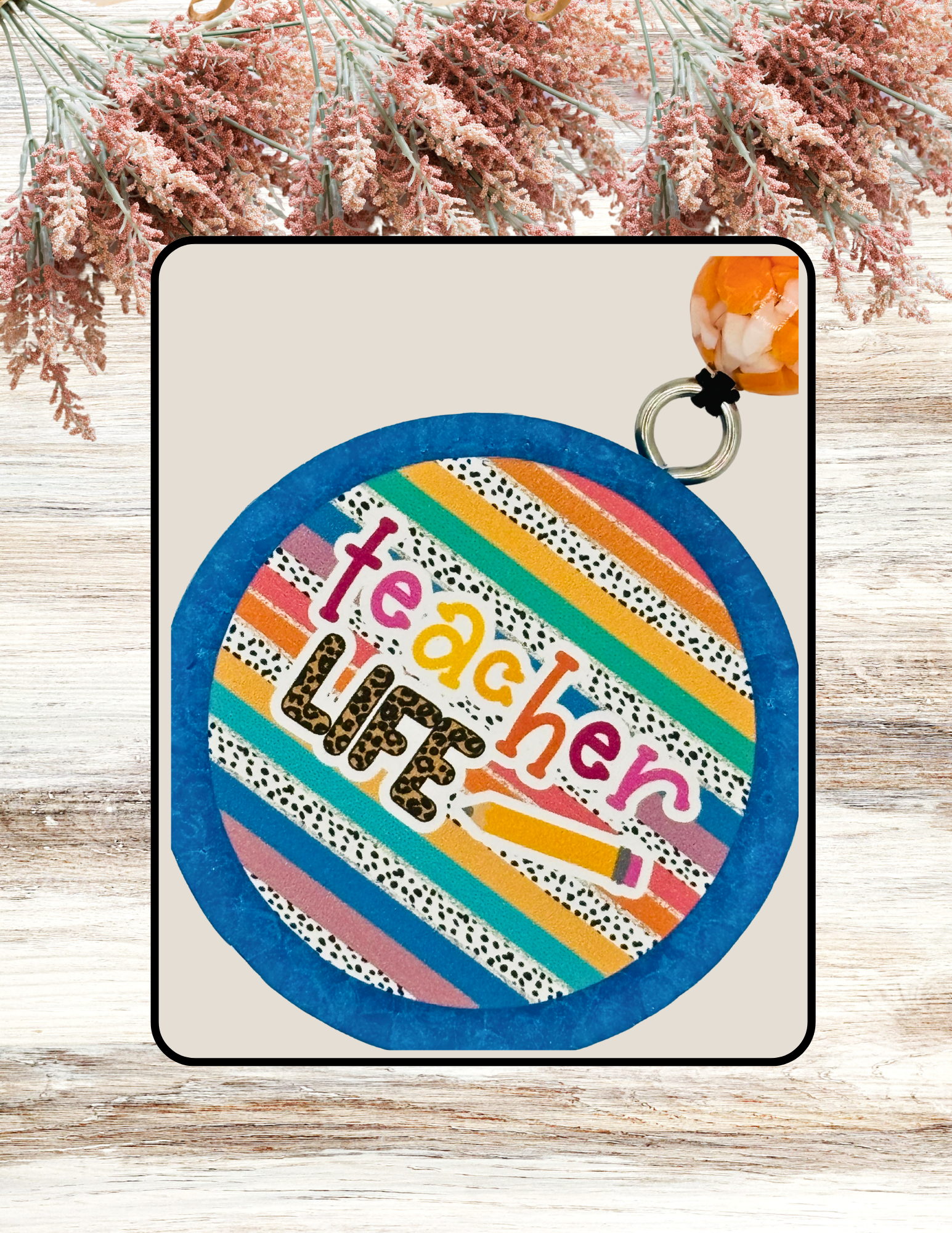 Adorable Freshie Round Teacher Life Stripe Print in Blue. The fragrance is Lemon Pound Cake. Awesome for car, or any small space you want to smell amazing!