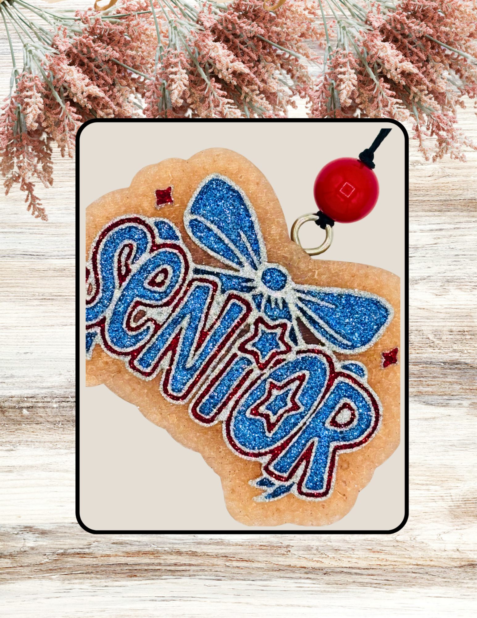 Adorable Senior design in Red, Blue and Silver. The fragrance is Copper Coconut. Awesome for car, or any small space you want to smell amazing!