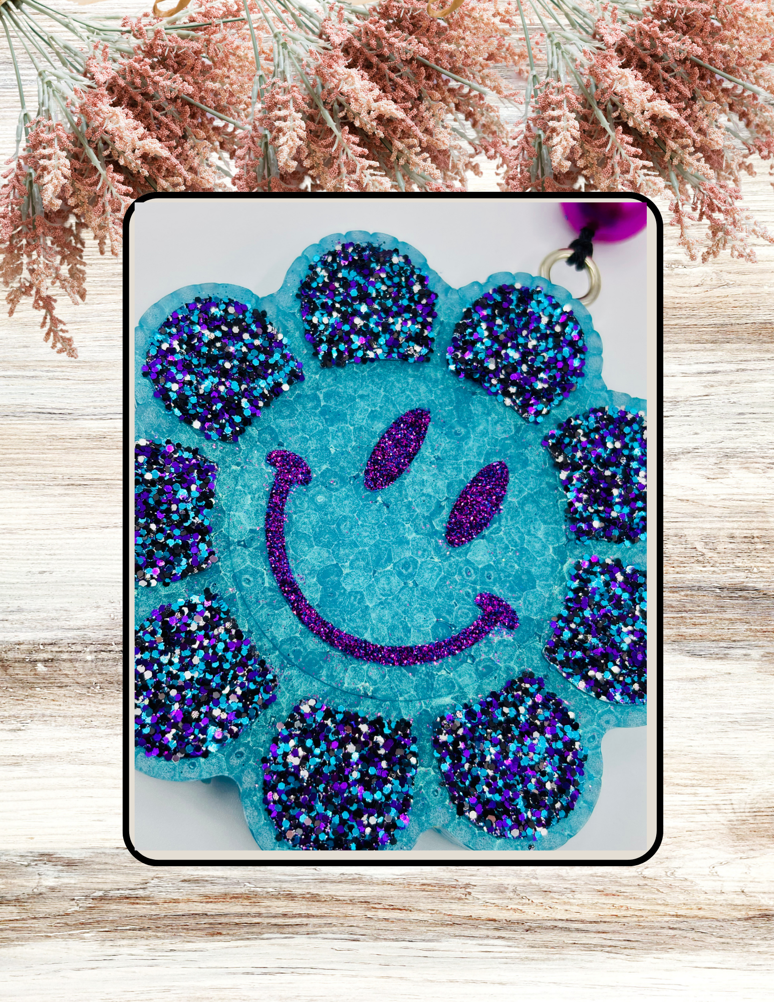 Adorable Smiley Flower with accents of a Black, Pink & Silver glitter design. The fragrance is Baja Cactus Blossom. Awesome for car, or any small space you want to smell amazing!