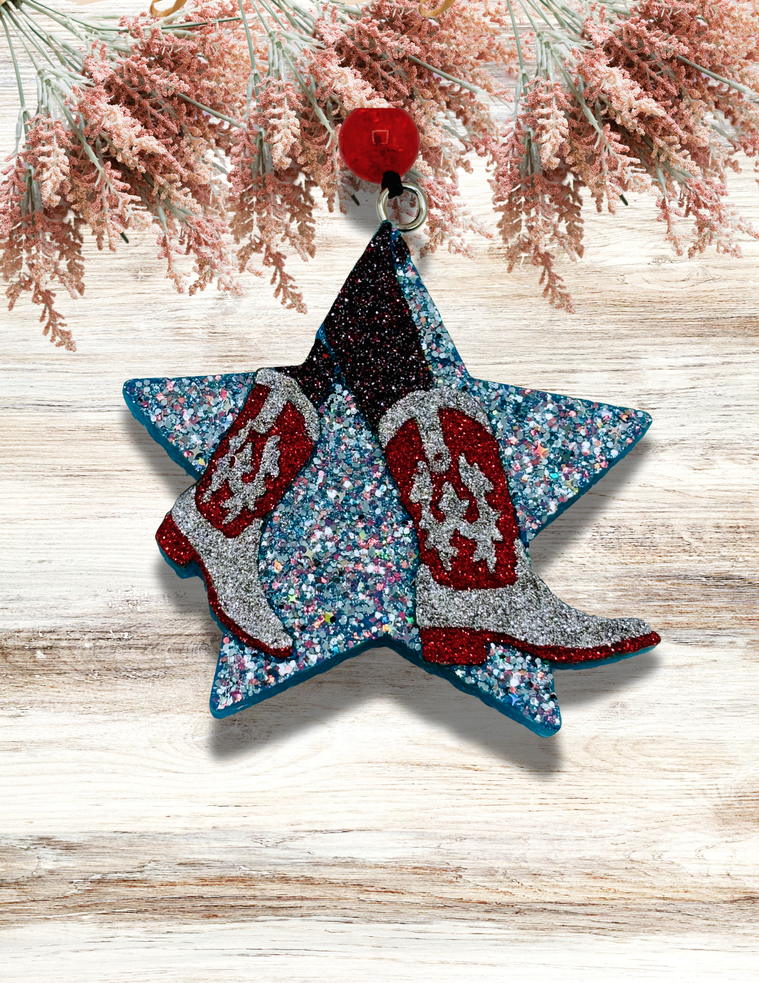 Adorable Cowboy Boot within a Star with accents of a Silver & Red Glitter design. The fragrance is Pumpkin Apple. Awesome for car, or any small space you want to smell amazing!