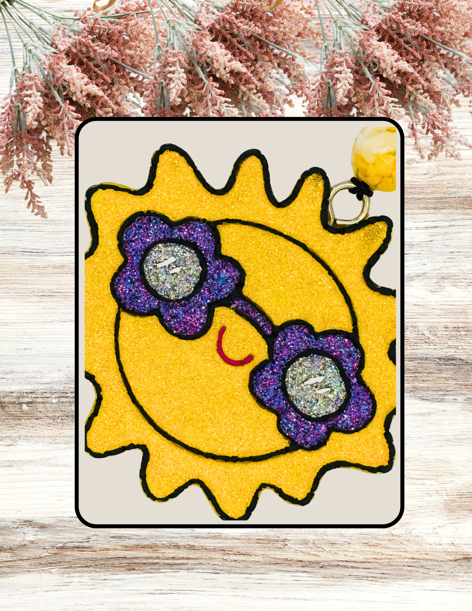 Adorable Sun with Sunglasses design in Bright Yellow and Purple Sunglasses. The fragrance is Boomshakalaka. Awesome for car, or any small space you want to smell amazing!
