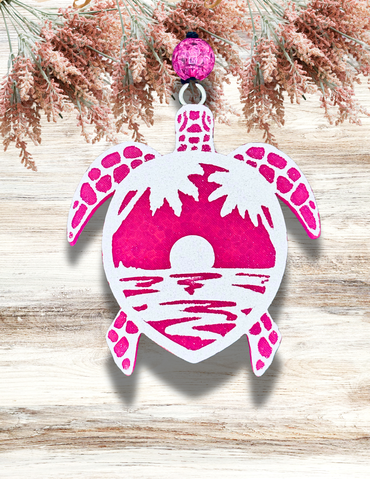 Adorable Sunset Sea Turtle design in Neon Pink and White. The fragrance is Pink Sangria. Awesome for car, or any small space you want to smell amazing!