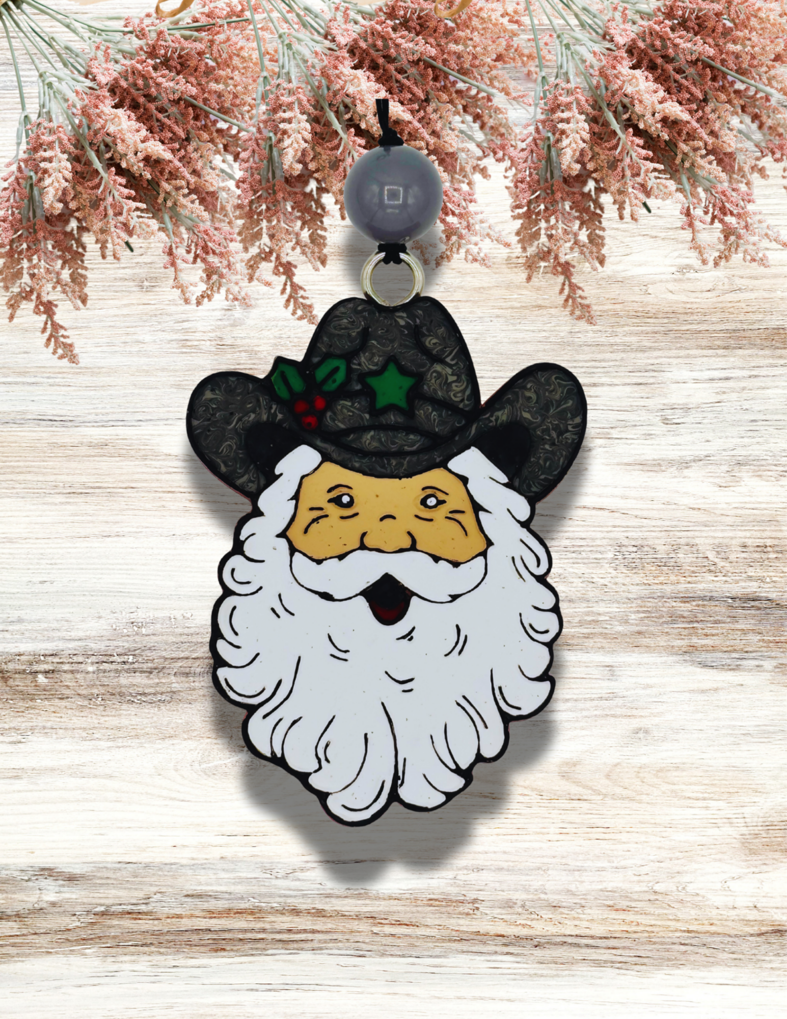 Adorable Western Santa design in Gray and Green. The fragrance is Pumpkin Cheesecake. Awesome for car, or any small space you want to smell amazing!