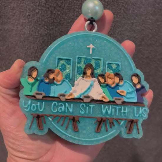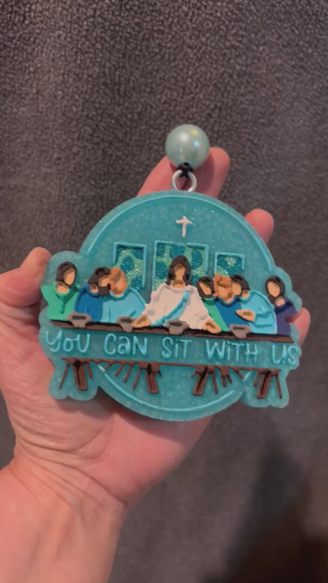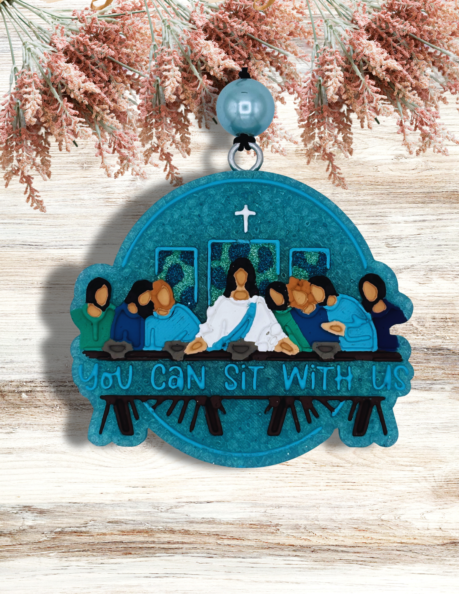 Adorable Last Supper You Can Sit With Us design in Shades of Turquoise. The fragrance is Cozy Hot Apple Cider. Awesome for car, or any small space you want to smell amazing!