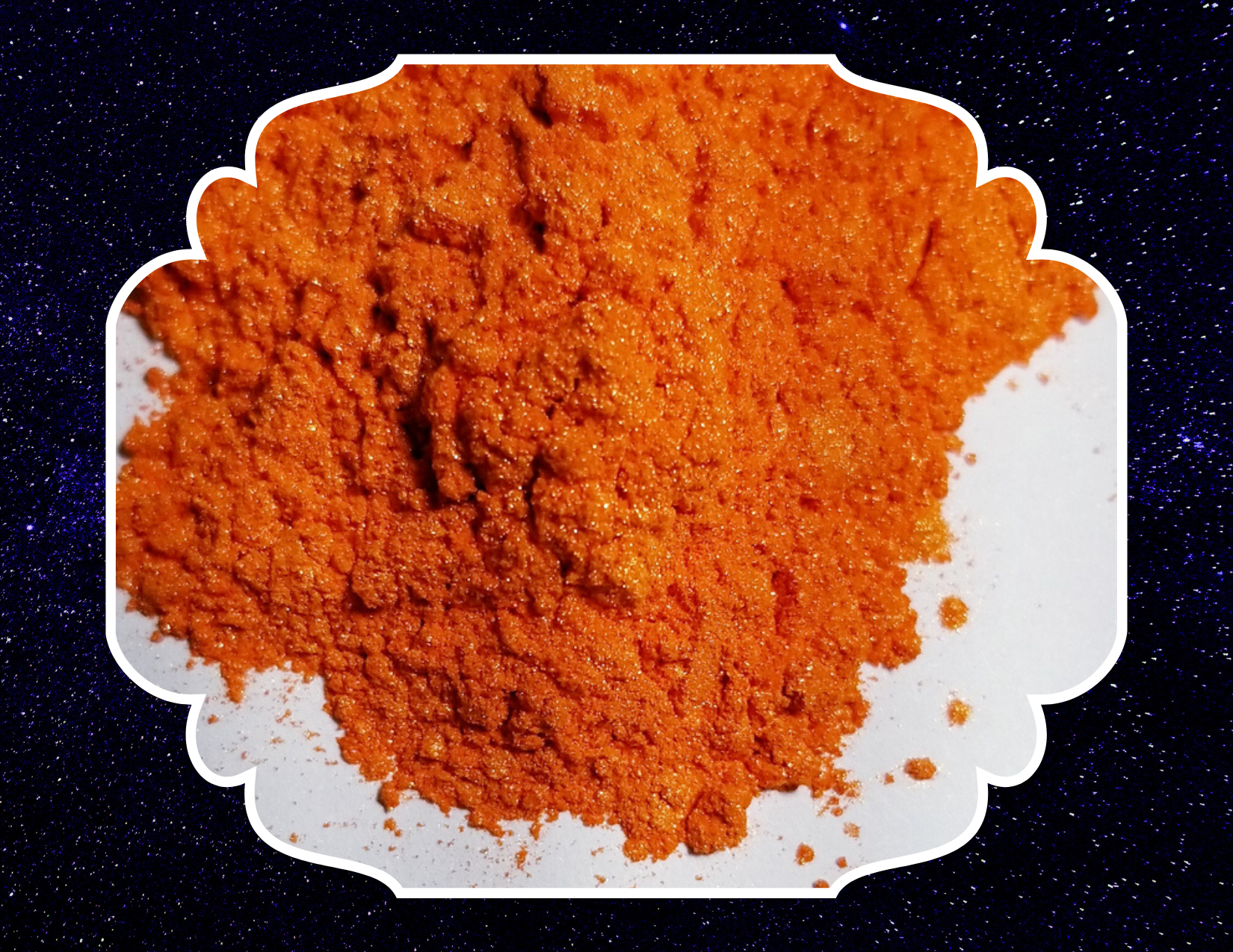 A synthetic gorgeous orange mica powder with high color purity. Sold by volume in a 5 gram pot.