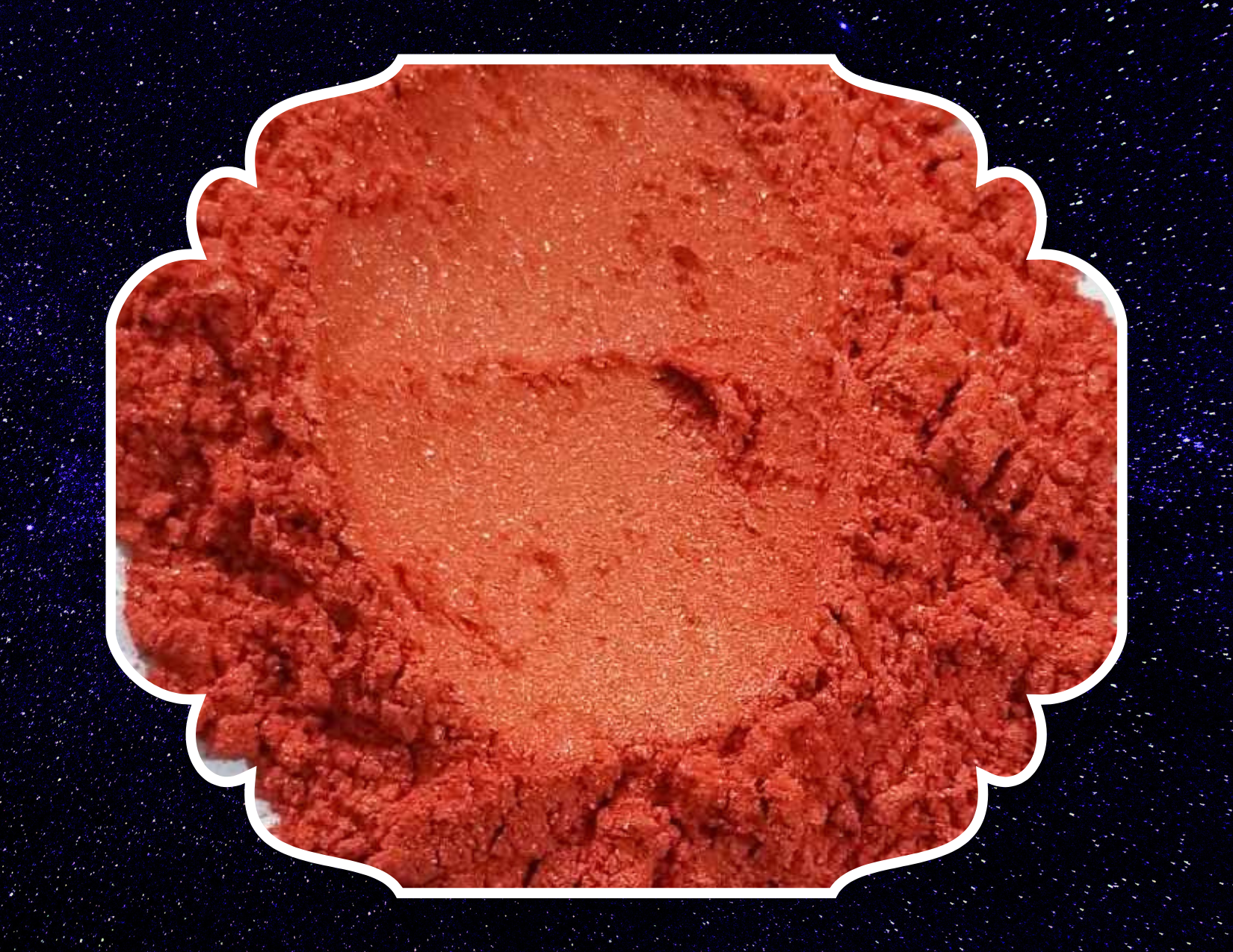 An gorgeous deep orange mica powder with lots of bold color. This product has high color purity. Sold by volume in a 5 gram pot.