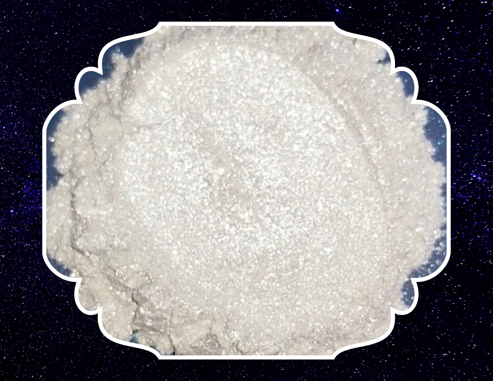 A shimmery white pigment glitter that is the smallest micron size. More demure than Star Dust but perfect to add sparkle to your top coat of epoxy. Sold by volume in 5 gram pots.